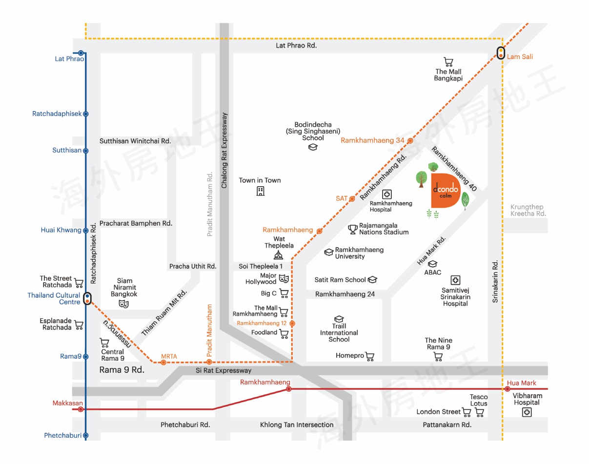 項目位於Ramkhamhaeng路和Hua Mak路交匯處,