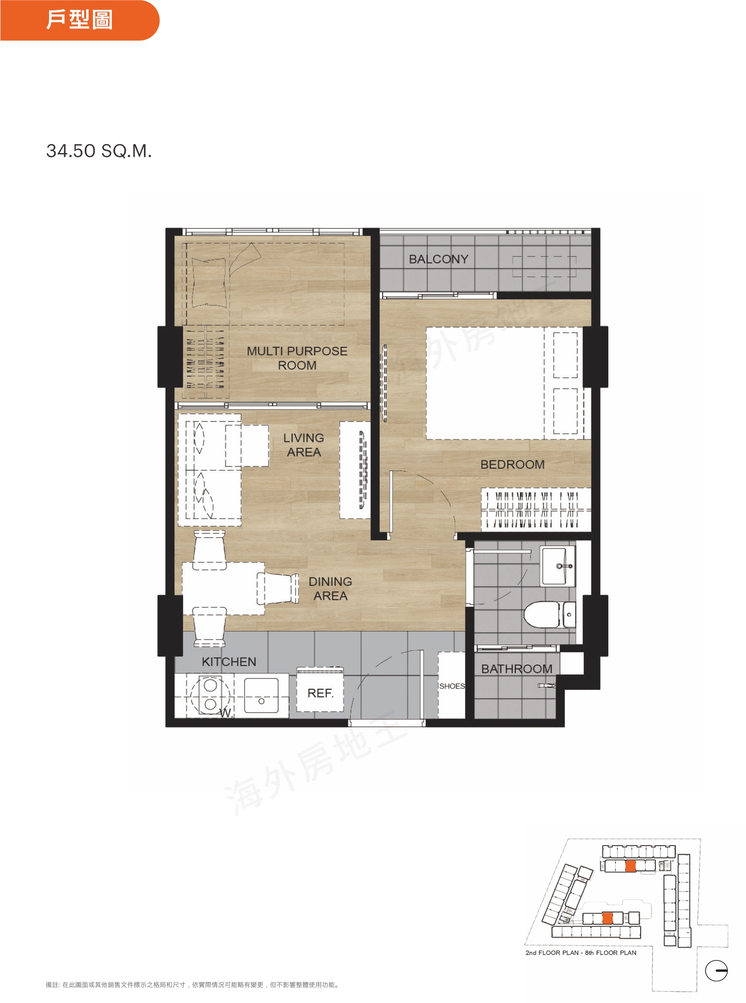 1房1衛(多功能室) 34.00 – 34.75