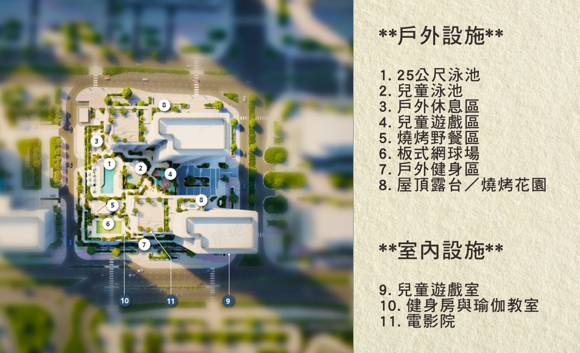 平台層設有成人與兒童泳池,整體設計以生活便利為首要考量,每戶住宅皆經過精心規劃,兼顧舒適與實用。