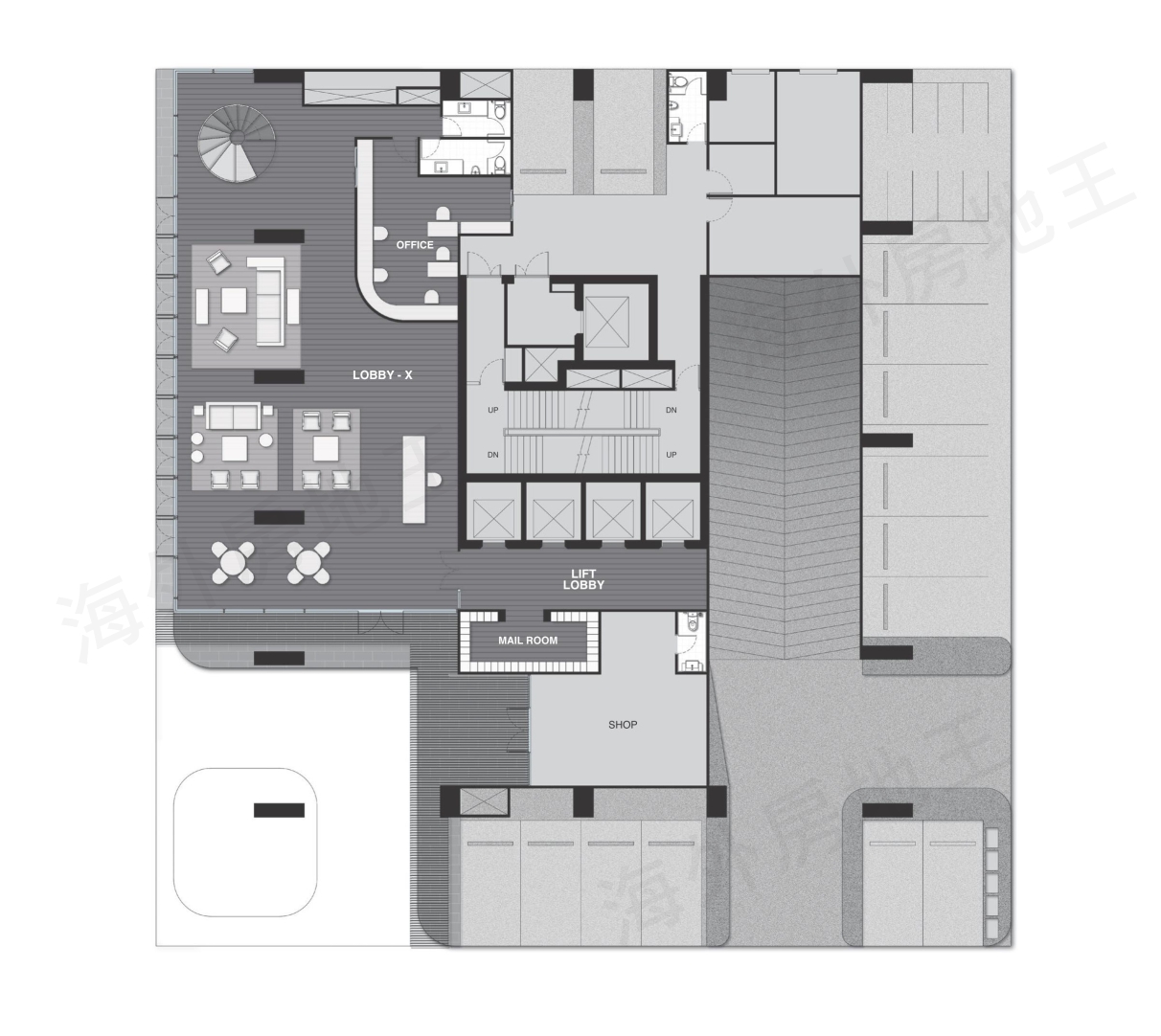 地面:大堂/智能自動停車場/郵箱室/洗衣房