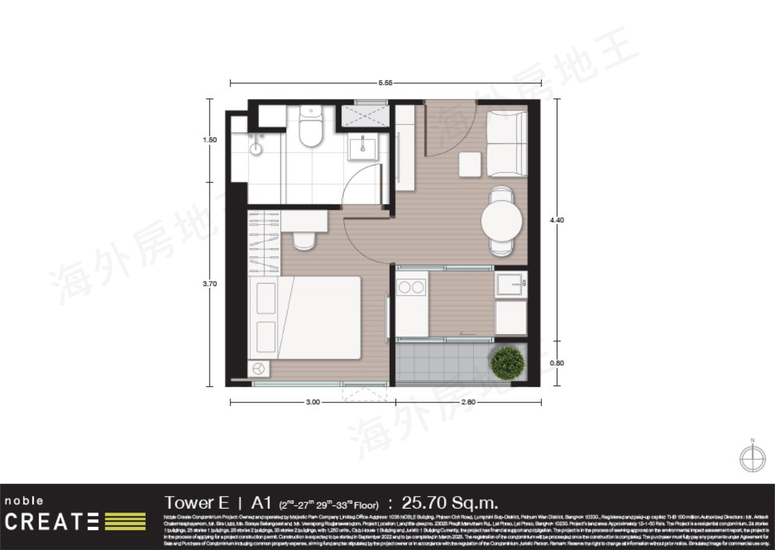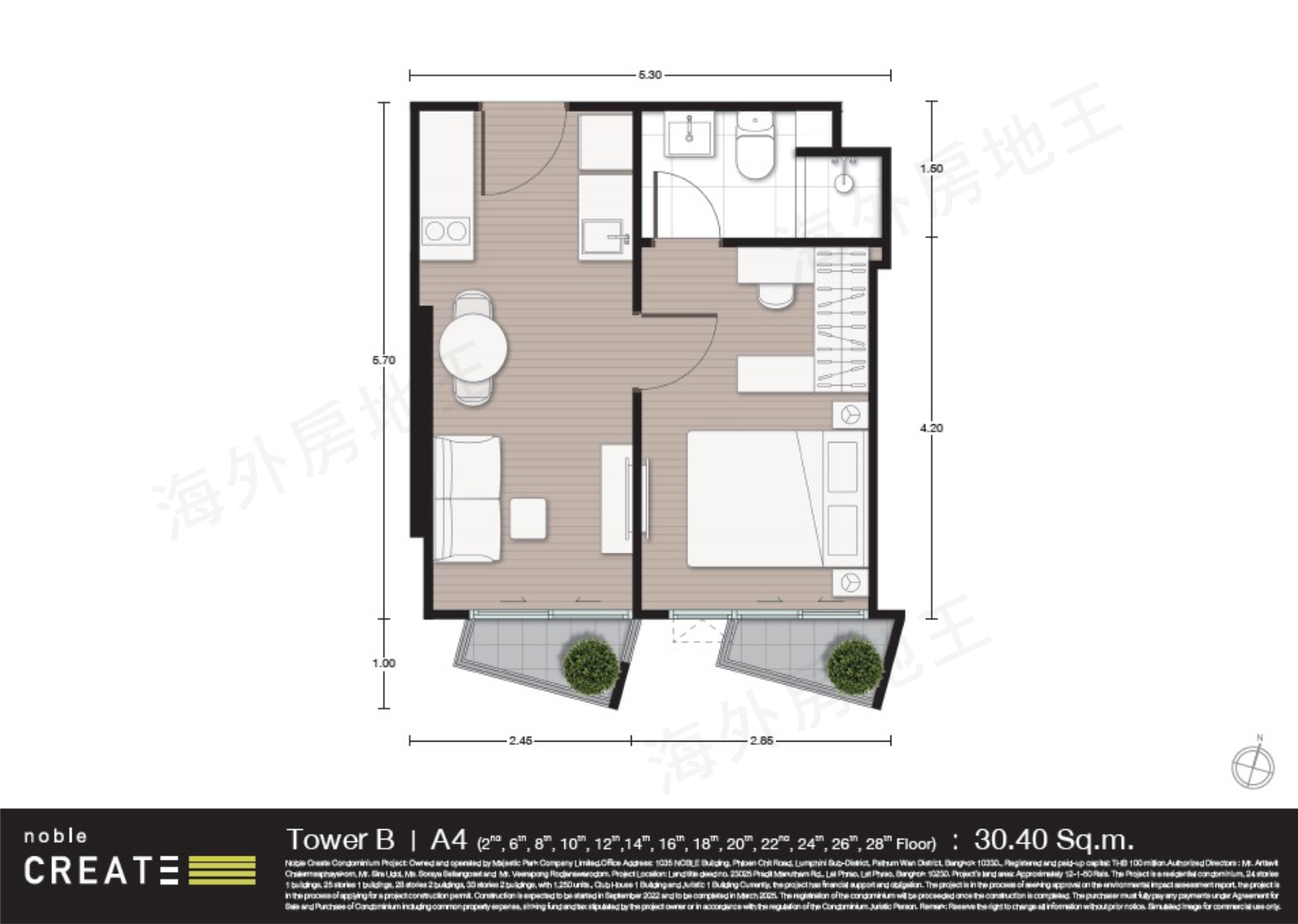 60 泰銖/平方米/月(需預先繳付1年費用)