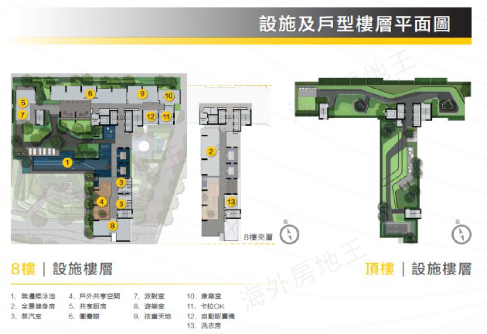 8 樓:無邊際泳池/蒸汽室/戶外共享空間/共享廚房/圖書館/派對室/遊樂室/孩童天地