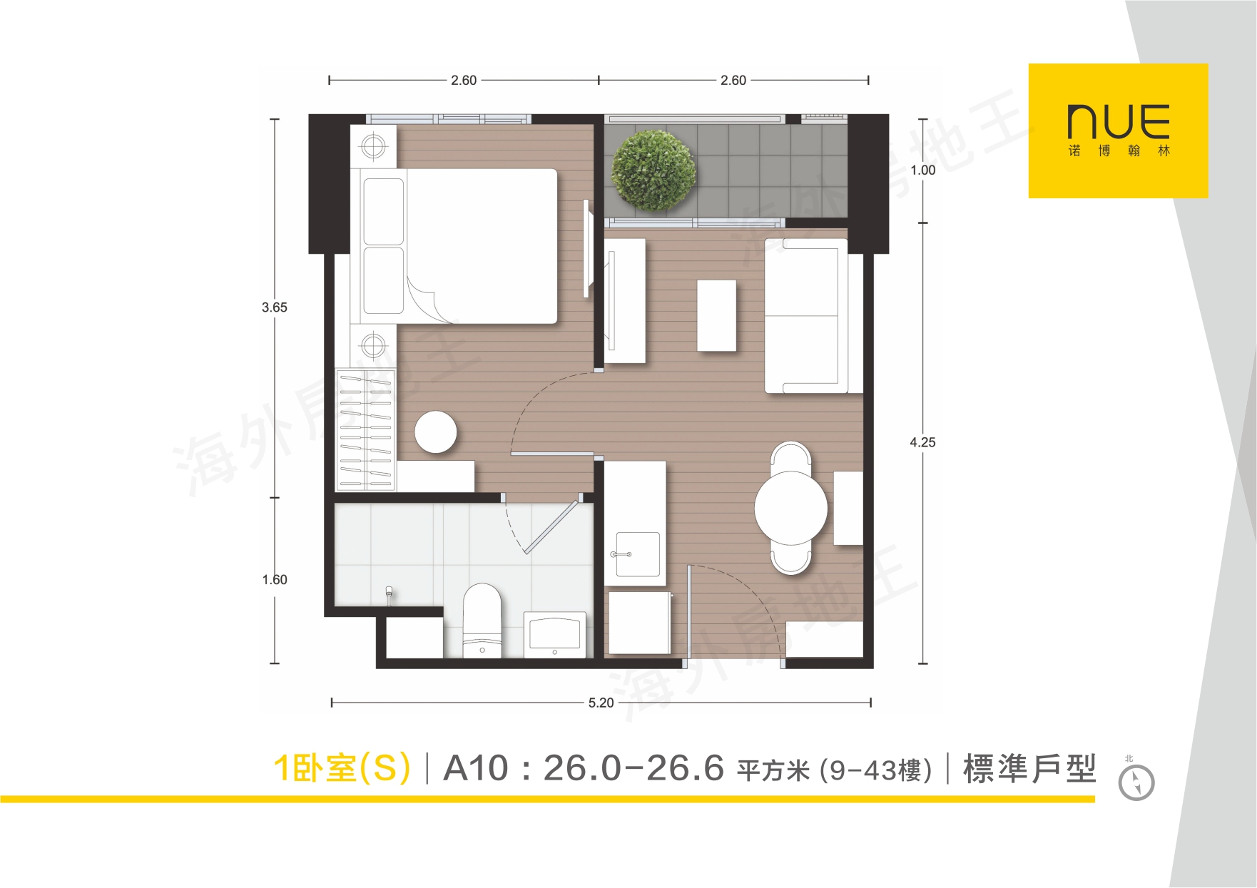 1 房 1 廳 1 廁(小):26.0–26.6 平方米
