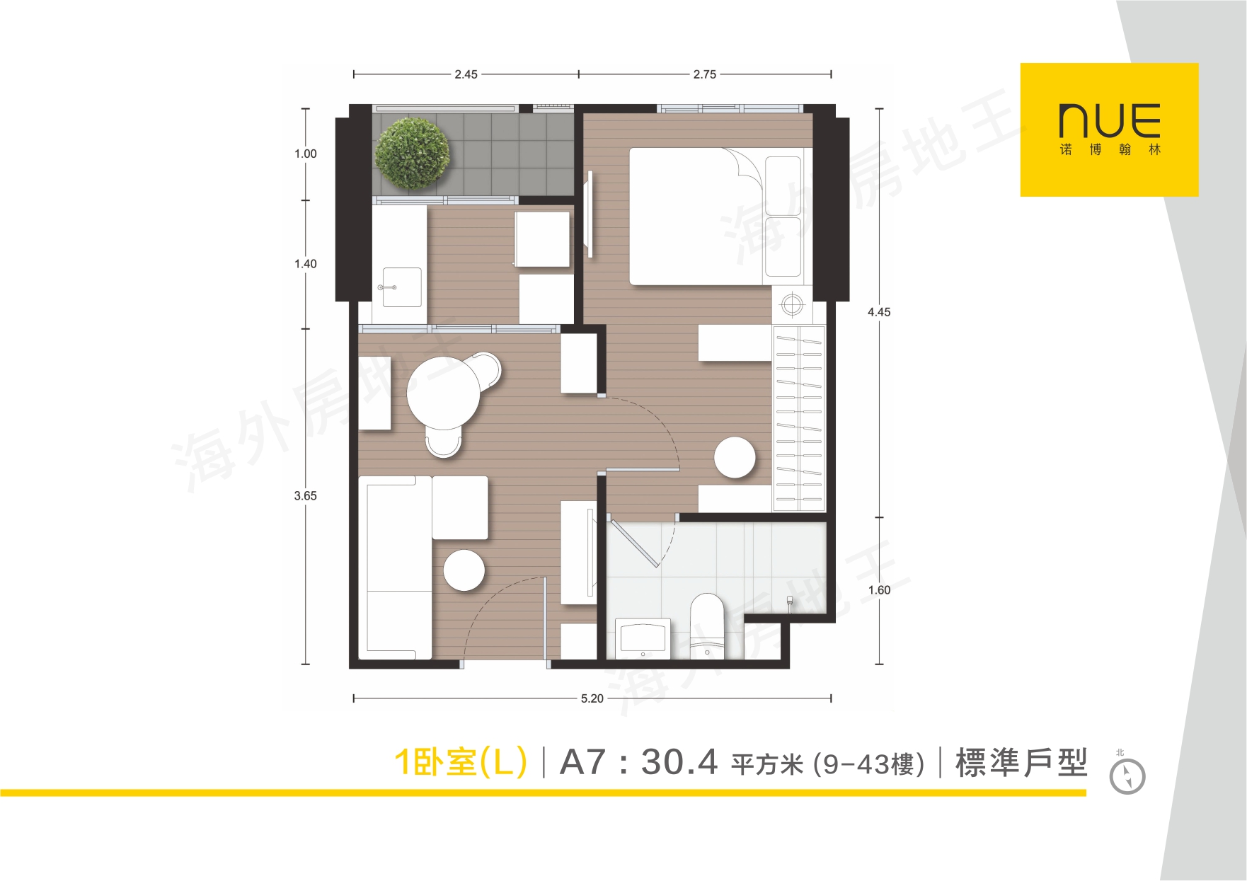 1 房 1 廳 1 廁(大):30.4 平方米