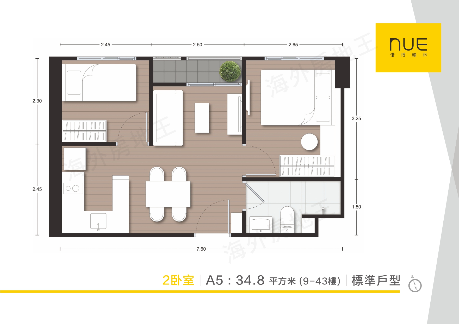 2 房 1 廳 1 廁:34.8 平方米