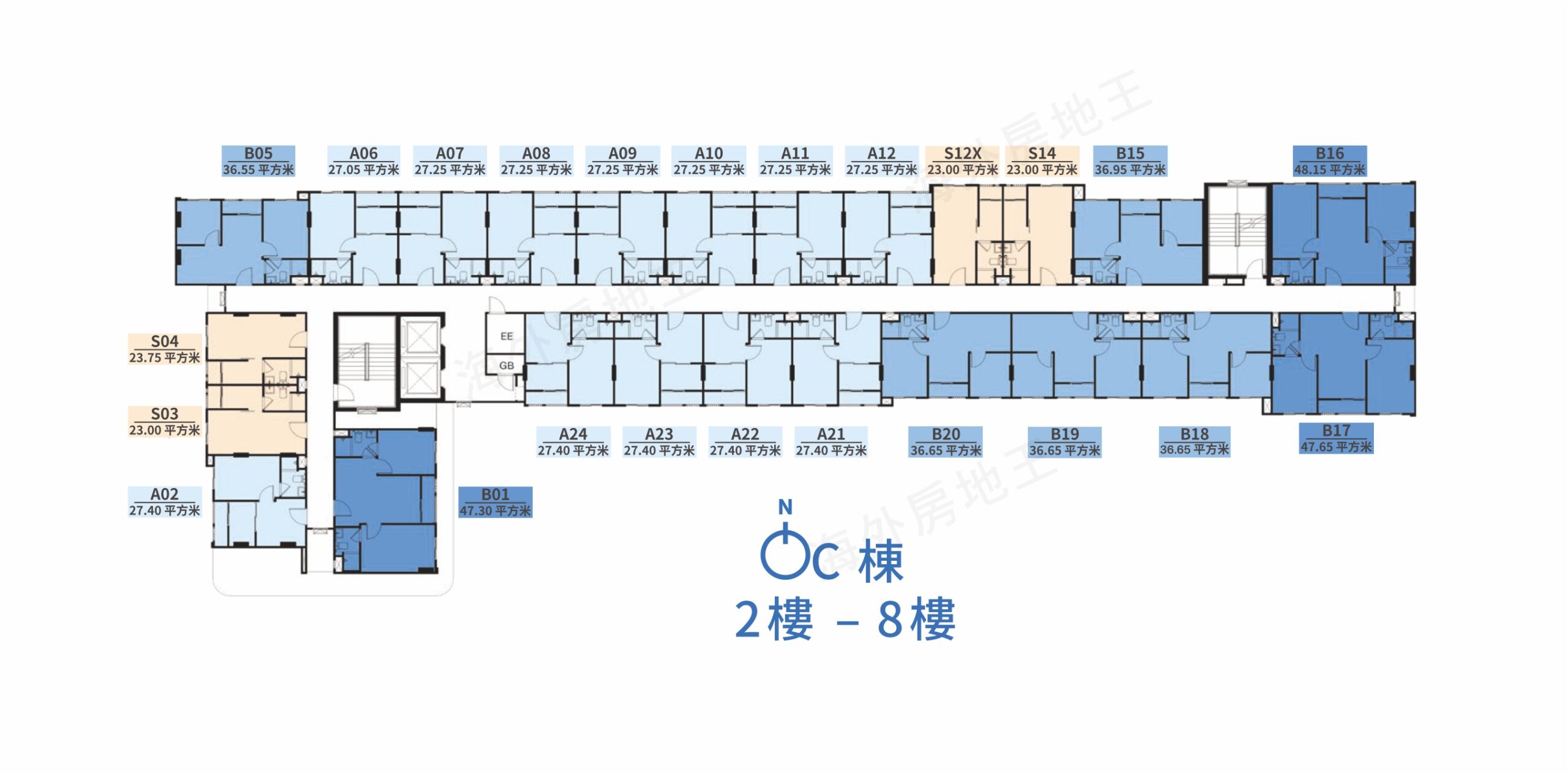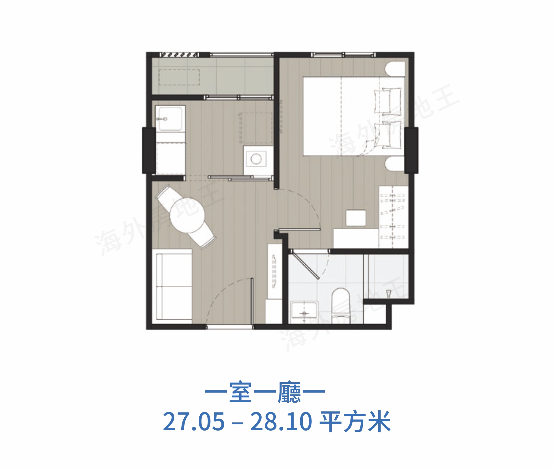 一室一廳一衛:27.05 – 28.10 平方公尺
