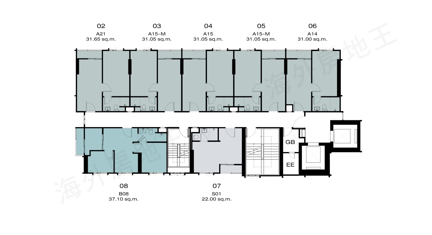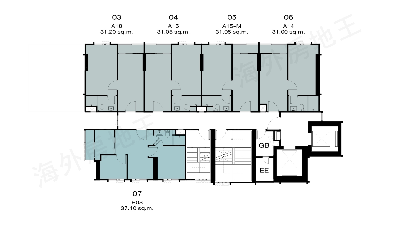 一房一廳一廁:24.90-31.65 平方米