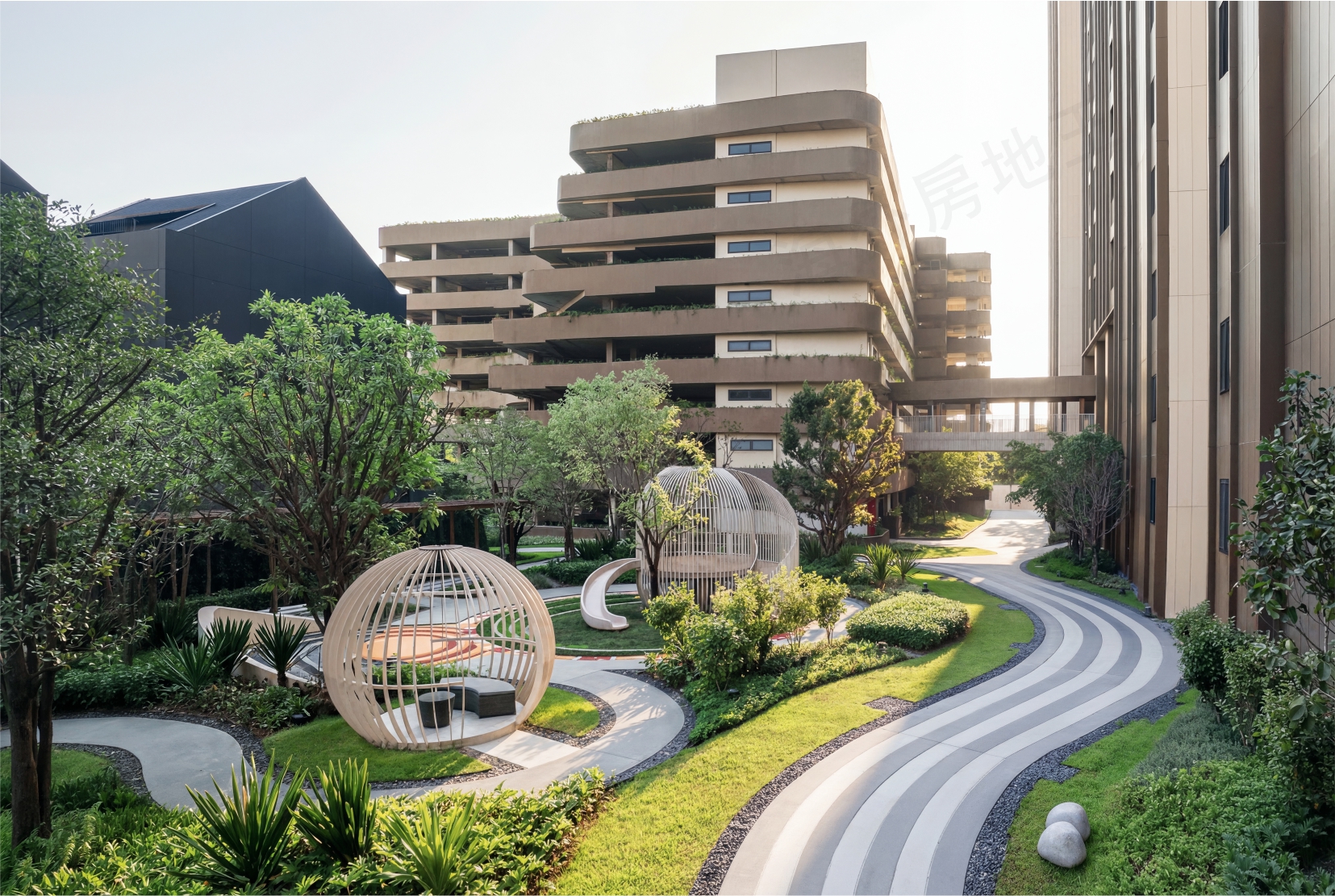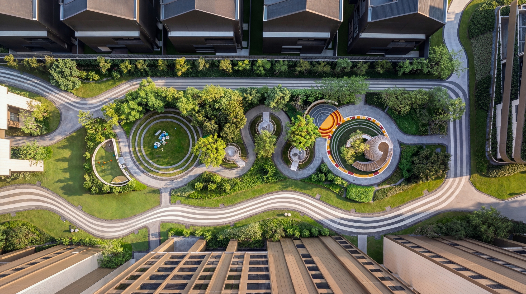 河流地帶:星晨堤岸/河畔伸展空間/河景庭園/兒童戲水池/休閒游泳池/無邊際游泳池