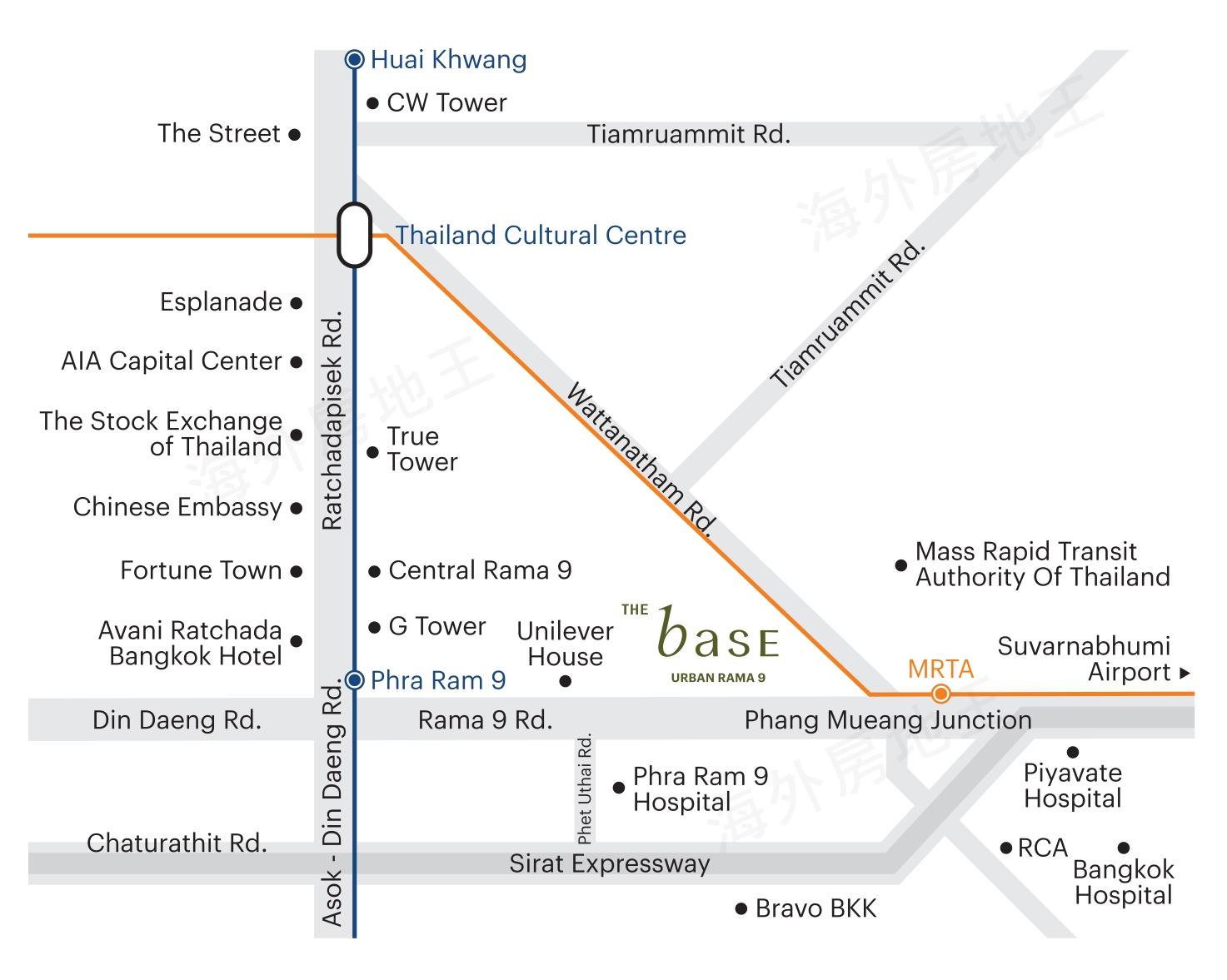 Rama 9、Ratchadapisek 和 Phetchaburi 三條主要幹道匯聚