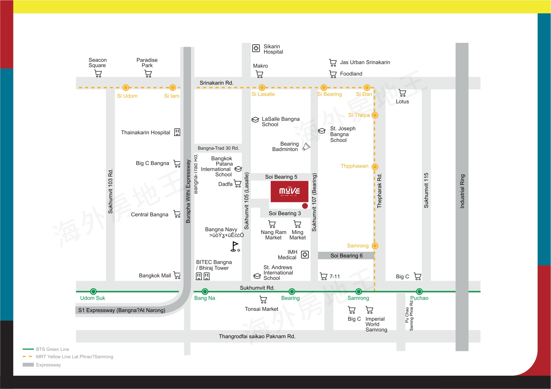 THE MUVE Sukhumvit 107 為尚思瑞(Sansiri)最新推出的公寓項目,座落於鄰近 BTS Bearing 站 的優越地段,周邊生活機能完善,可快速連結多條主要道路直達市中心。